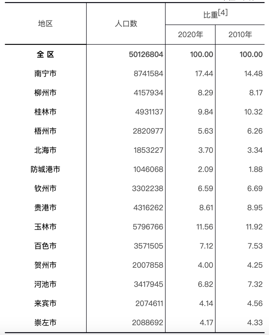 过去十年,南宁在广西的人口比重只提高了不到3个百分点,而昆明的人口比重提高了接近4个百分点。