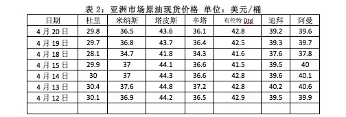 安迅思分析认为,国际油价的强势反弹对中国市场信心有所支撑,受“抄底”心态提振,山东地炼柴油出货好转,价格小幅上涨;华东、华中和西南等地区受阴雨天气影响,终端需求下滑。此外,由于“五一”小长假即将来临,预计4月最后一周将出现一波备货潮,各地购销活跃度将提高。