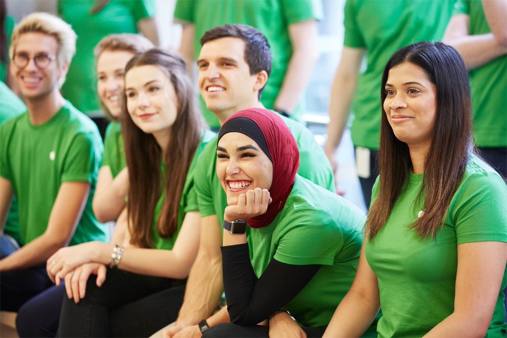 今年,苹果发起相关活动的时间比往年都要提前。从4月15日开始,全球132家Apple Store零售店(包括中国地区的24家苹果零售店)的标志性Logo发生细微的变化——白苹果的叶子变成了绿色。