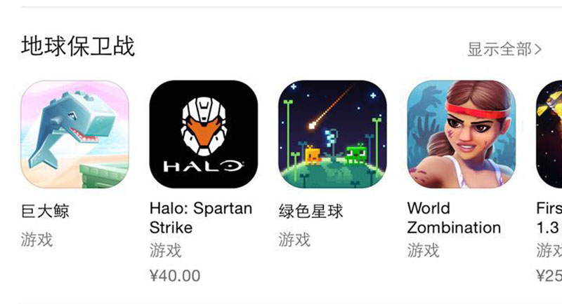 遗憾的是,在中国的 App Store并没有如此精心设计的专题页面,大多以上的应用也并未在中国地区上线,不过中国版的App Store还是专门设立了一个“地球保卫战”板块,为你推荐一些跟“保护地球”主题相关的游戏,算是一种心理安慰吧。