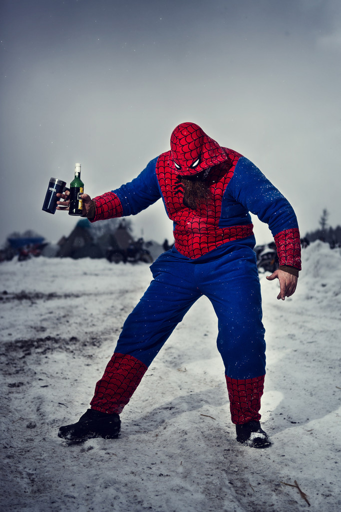 大多数人第一天晚上就到了,他们骑着轰鸣的摩托车,车上载着电锯、炉子、帐篷还有很多啤酒。搭好帐篷,生起篝火,然后狂饮就开始了。不一会儿,空气中就充满了烤猪肉的味道,还有“许多混着千奇百怪的酒水的大锅”所散发的味道。每年都是一样的寒冷刺骨,然而并没有人在意。“对于参加大象摩托车大会的人来说,冰雪和寒冷,烟火和烤猪肉的味道,都是快乐必不可少的元素。”D'Angelo说。