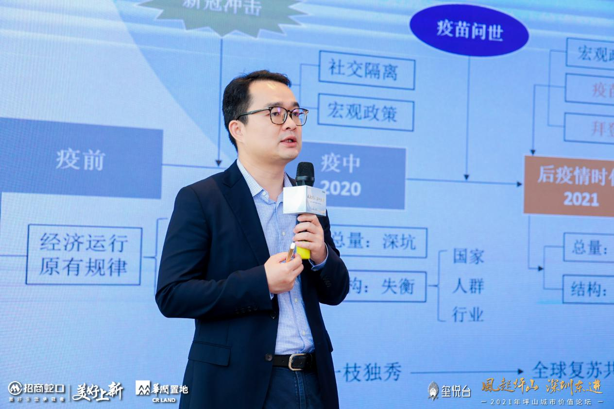 在这场探讨坪山发展价值的盛会上,招商银行研究院宏观经济研究所所长谭卓、中国城市规划设计研究院深圳分院副院长王泽坚、中国(深圳)综合开发研究院区域发展规划研究所主任郭毅三位嘉宾,从宏观经济、空间规划、产业发展三大维度剖析2021年坪山发展趋势,展望坪山城市价值。