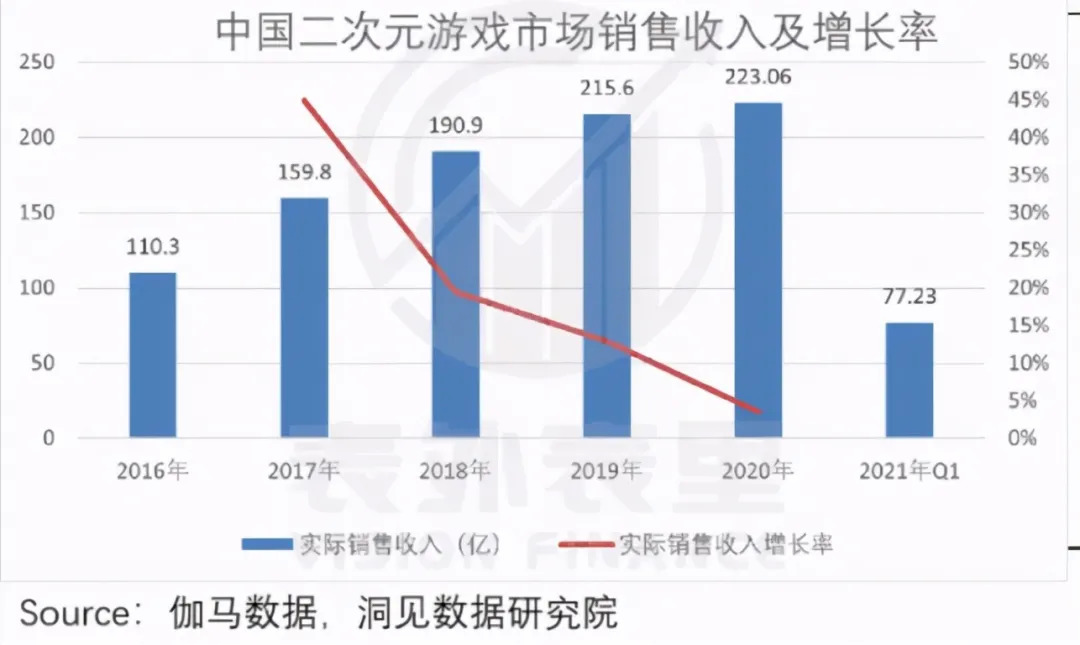 当他们逐渐取代80、90后成为游戏市场的主流群体,市场的倾向也会在一定程度上向在Z世代群体中盛行的二次元文化靠拢,从近年的数据来看,二次元手游市场也在逐年增长。