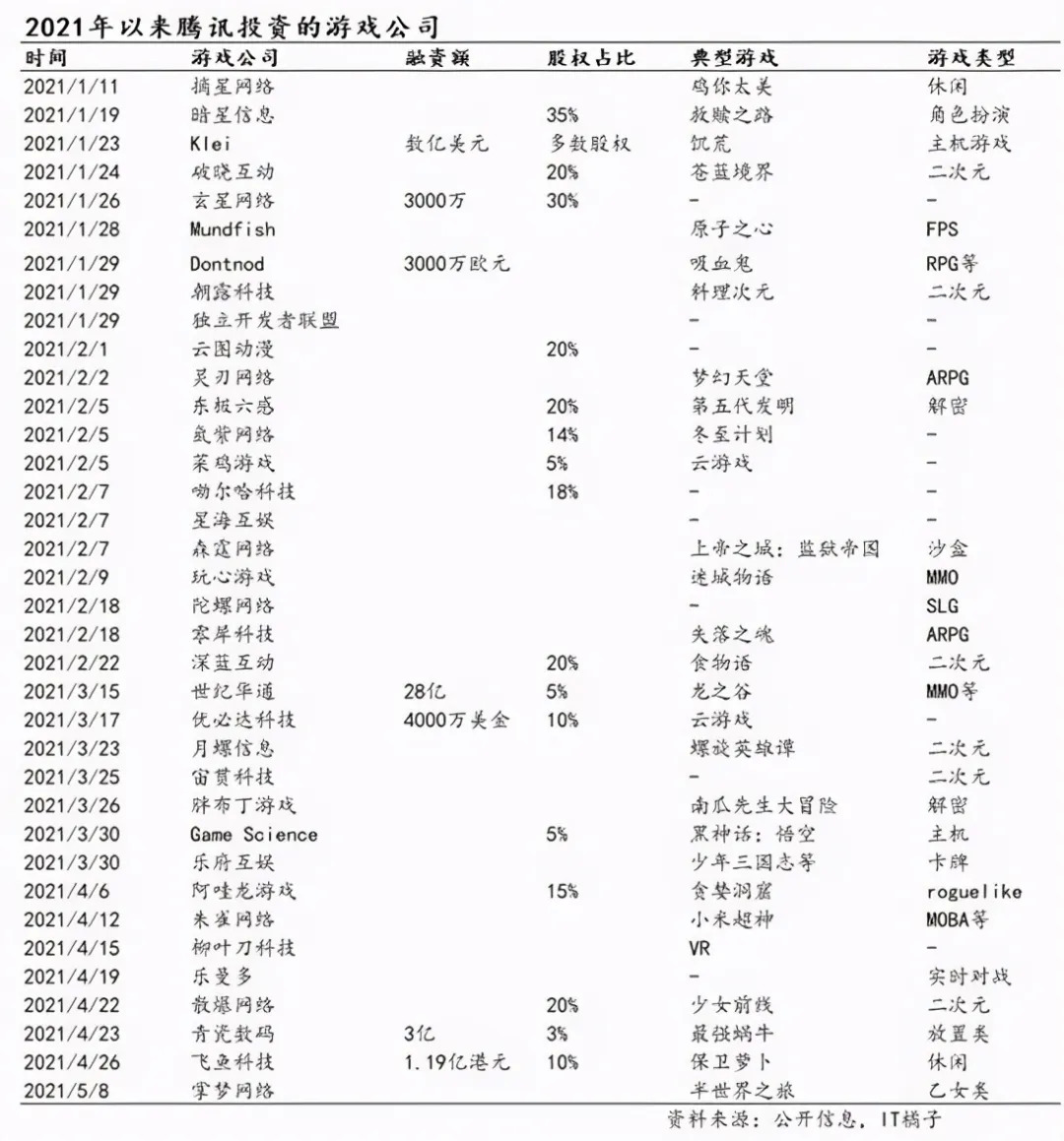所以,腾讯也试图通过“买买买”战略,来让下一款“爆品”尽量出现在自己的阵营里。仅在今年一季度,腾讯就投了36家游戏公司,休闲、二次元、角色扮演、实时对战等各种品类都有。