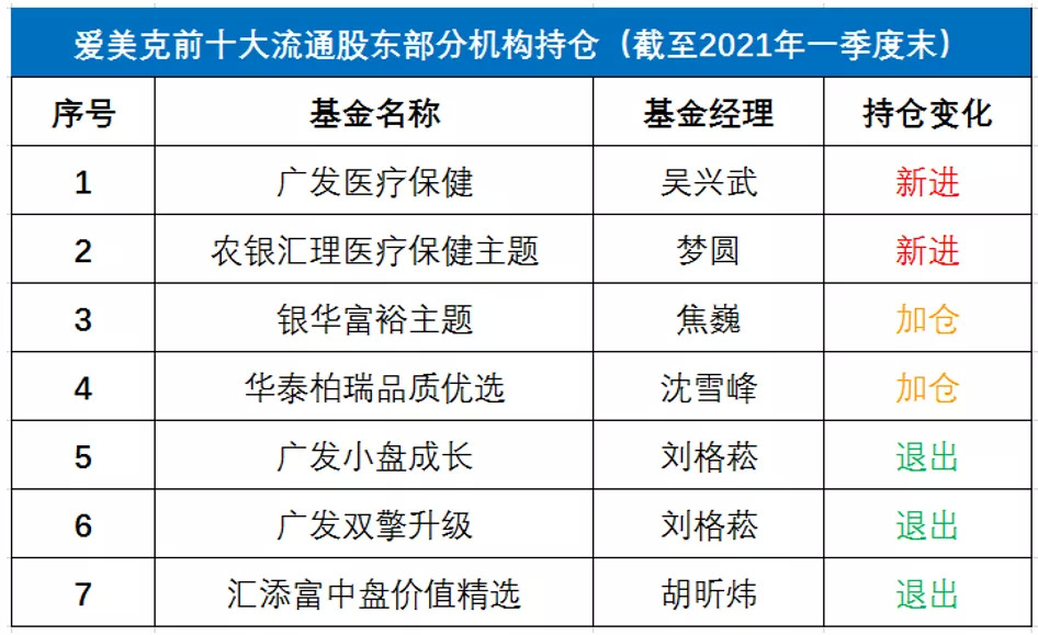 以爱美克为例,我们具体来看下机构是如何调仓的: