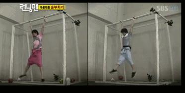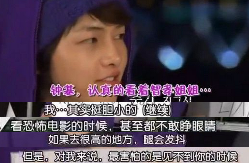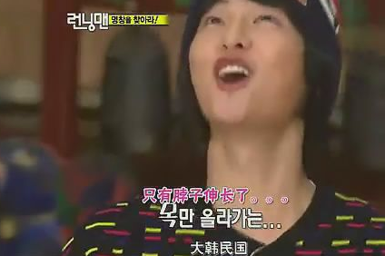 作为积极担当的宋仲基,那会儿还木有“柳大尉”壮硕的胸肌和敏捷身手,经常悲催地第一个就被out了,嘤嘤嘤~
