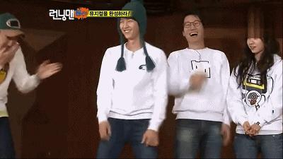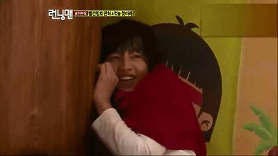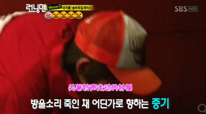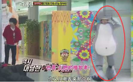 他对自己的躲藏能力,更加蜜汁自信。看到智孝欧尼穿人偶衣服伪装成功,他也积极模仿。