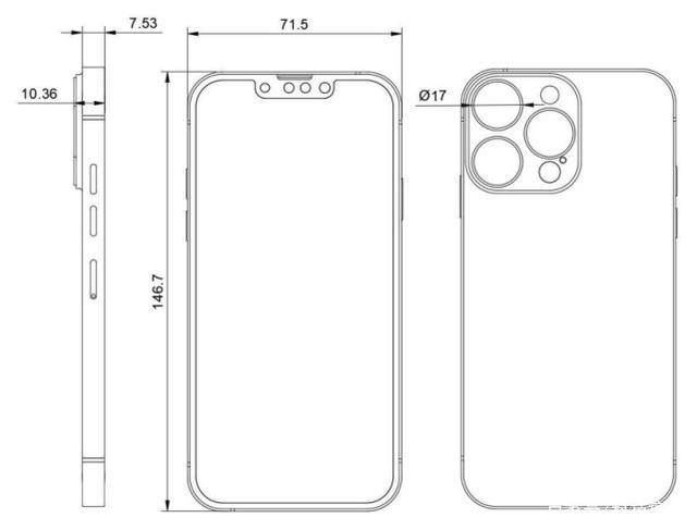 传感器尺寸加大、电池容量增大,这意味着iPhone 13系列的整机厚度比上一代要有所增加。根据CAD图可以发现,iPhone 13 Pro的整机厚度为7.53mm,镜头区域厚度为10.36mm,相对于上一代的7.4mm确实增长了。