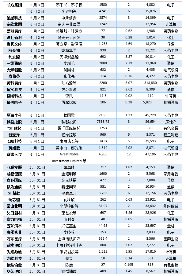 6月1日,英科医疗公告,公司实际控制人刘方毅及部分董事、高级管理人员计划在本公告之日起十五个交易日后的六个月内以集中竞价交易、大宗交易方式直接减持本公司股份不超过2200万股(即不超过公司总股本的6.07%)。以减持数量和公告当日收盘价估算,刘方毅等人此次减持预计套现约31亿元。