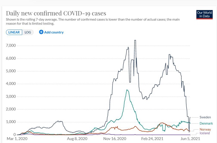 从去年新冠疫情开始,挪威的确诊和死亡病例一直在欧洲国家中保持低位。该国人口约532万,人口密度低,每平方公里仅约15人。