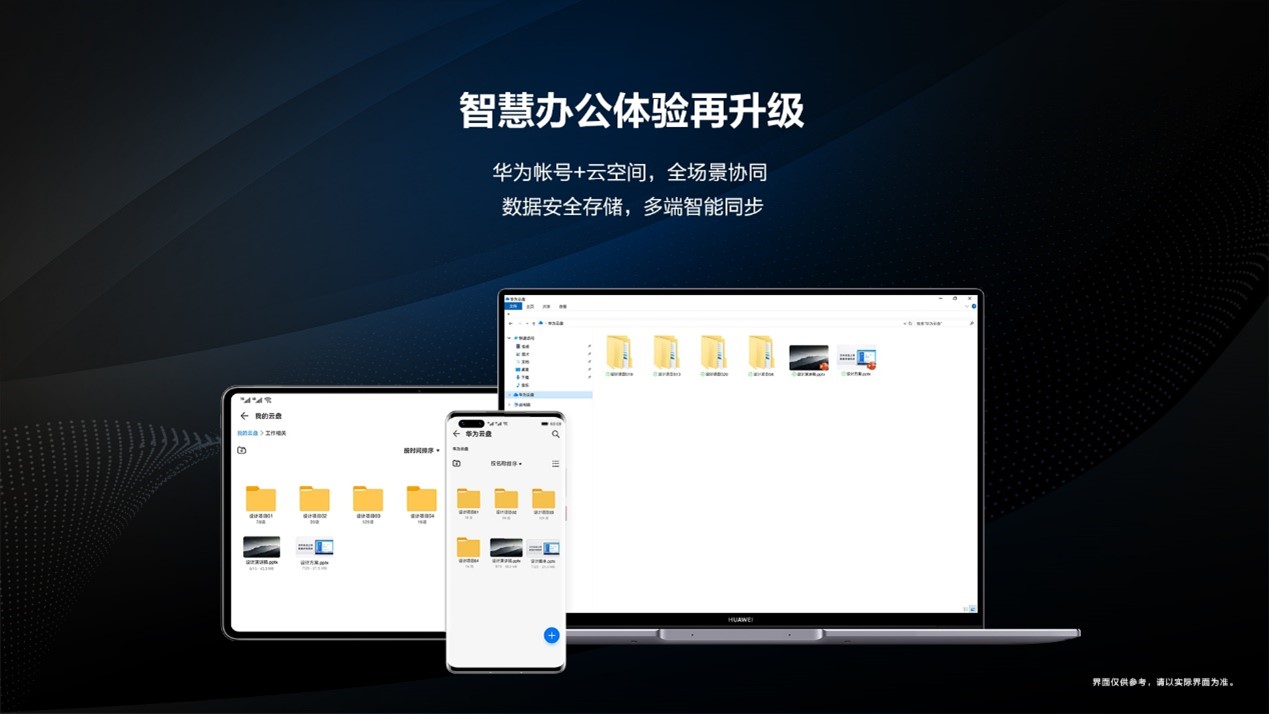 比如华为MateBook16搭载华为云空间PC客户端,实现了云空间与PC的完美融合,带来华为设备多端协同的全场景新体验。使用同一华为帐号在不同设备上登录华为云空间,用户的文件、照片、视频、联系人、备忘录、录音等数据,可以通过云端在多设备间自由流通并保持同步更新。同时,用户可对文件数据进行新增、编辑和删除,所有操作均会实时自动同步至多设备,真正实现“数据存于云端,多设备无缝流转”的智慧办公体验。