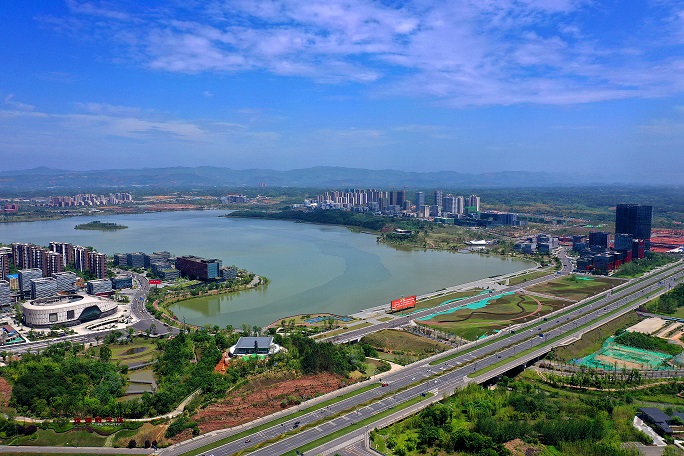 在天府新区兴隆湖上空,可以清晰地看到下面波光粼粼,水天一色,兴隆湖成为这座城市一道靓丽的风景线。说到天府新区,就不能不提到一个词-“公园城市”。