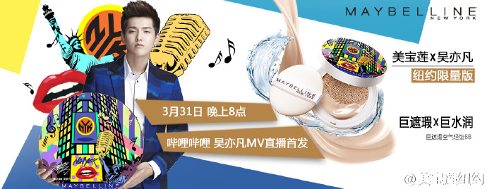 而欧莱雅旗下的年轻品牌美宝莲也在3月底尝了鲜。3月31日,被挂上美宝莲“首席艺术官”头衔的吴亦凡,在B站直播了他在美宝莲上班的情景。据陈汉泽说,这场活动的效果是美宝莲新推的BB霜卖出了1.1万多盒。