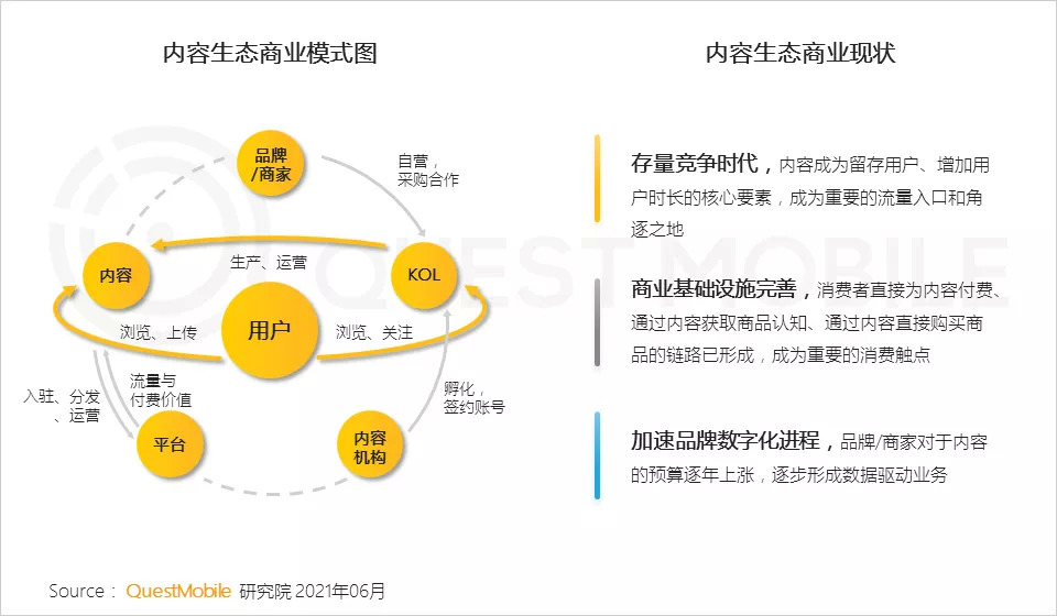 1、存量竞争时代,内容成为争夺用户时间的重要因素;内容、KOL、品牌、平台已形成稳固的商业生态