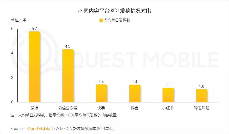 2.3 平台运营机制差异影响KOL发稿频率:微博KOL发稿活跃,微信公众号KOL在成熟推送机制下日更多条,其他平台发稿频率接近
