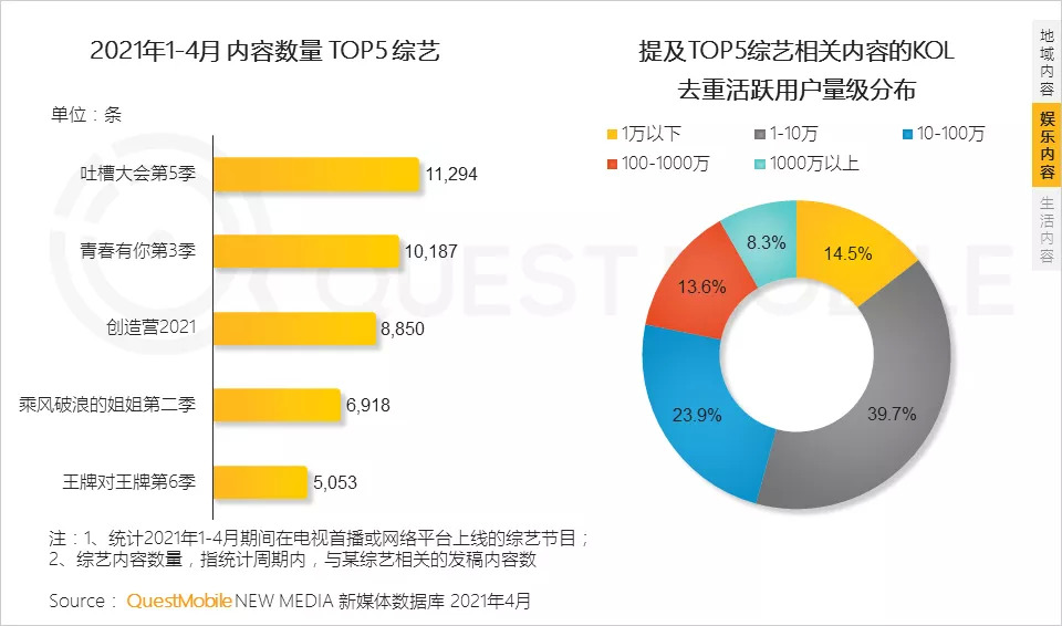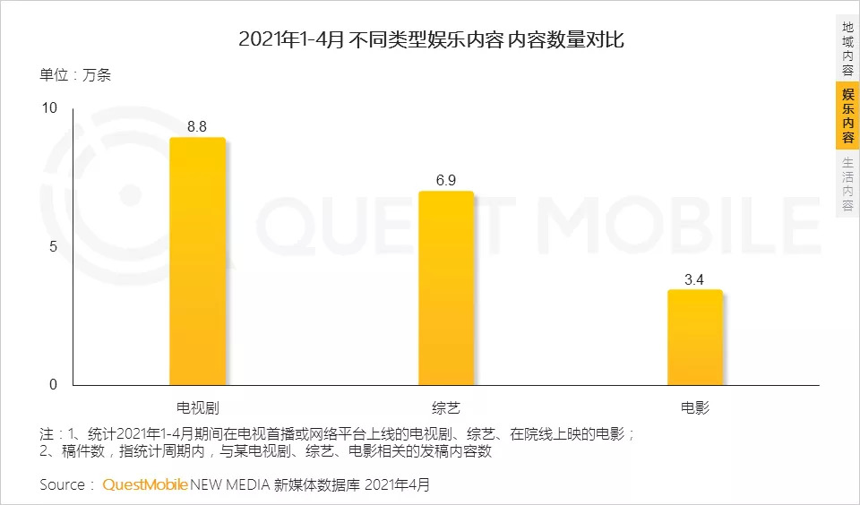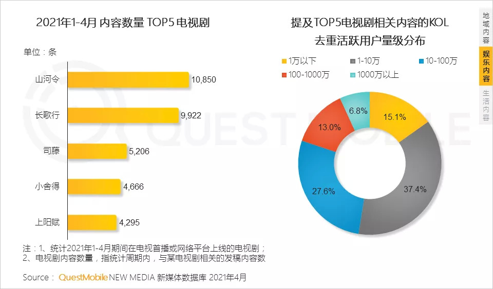 4、娱乐内容中,围绕热门影视综节目,内容平台中衍生出大量相关内容,其中电视剧的影响力最大