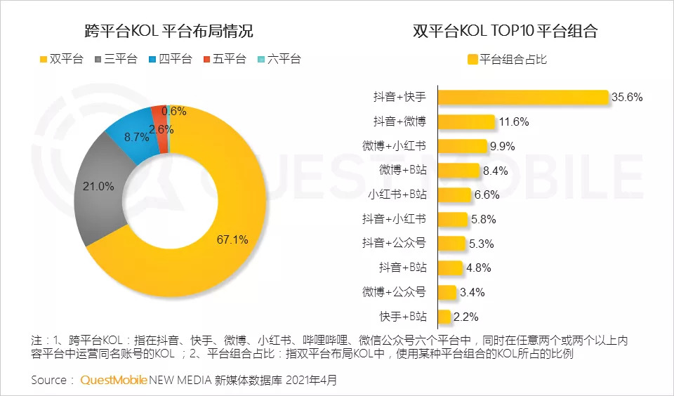 2.1 KOL跨平台布局成主要趋势,其中双平台分布居多,抖音快手成为主要平台组合