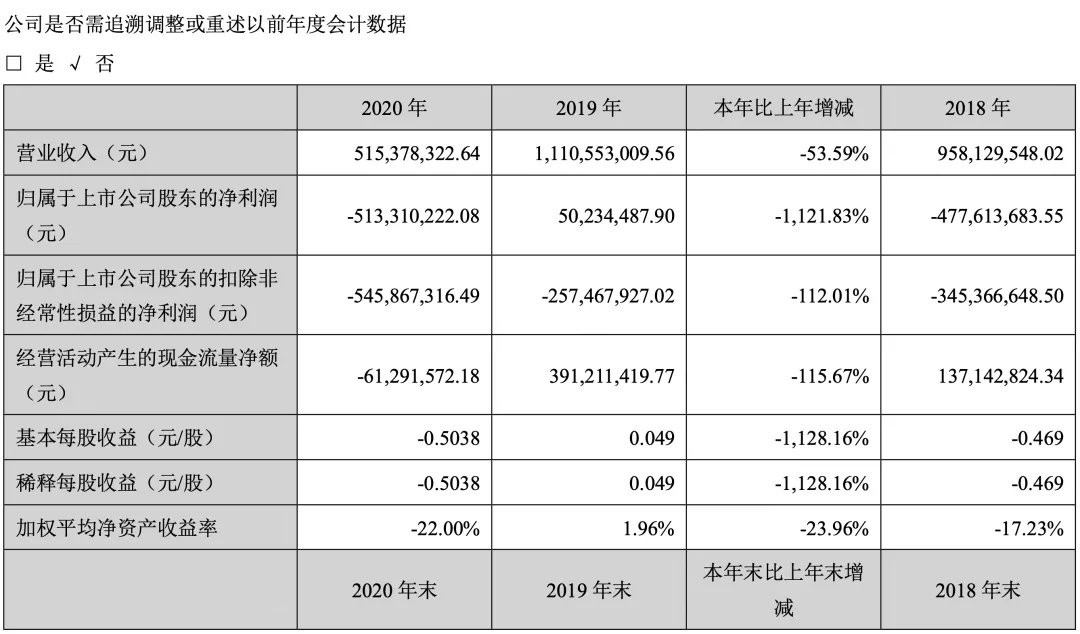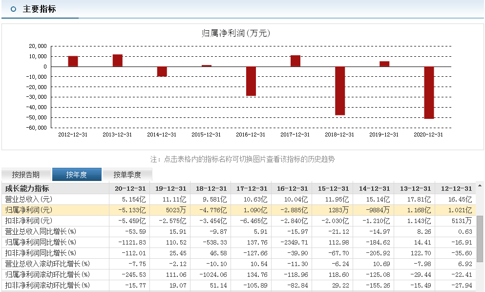 但这家曾经风光无两的区域龙头旅企或许不会料到,上市20多年后,公司业绩将跌入谷底。2020这一年,华天酒店无论是营收还是利润都创下了近10年来的新低:营收同比腰斩至5.15亿元,净利润则延续了多年以来盈亏交替的“规律”,在2019年盈利后血亏超5亿元,降幅达1121.83%。