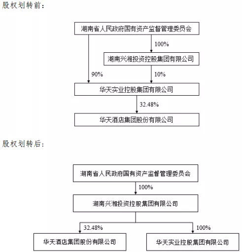 5月18日,华天酒店发布公告称,公司原控股股东华天集团已将其所持华天酒店全部32.48%的股份成功过户予兴湘集团,后者成为华天酒店直接控股股东,而公司实际控制人仍为湖南省人民政府国有资产监督管理委员会。
