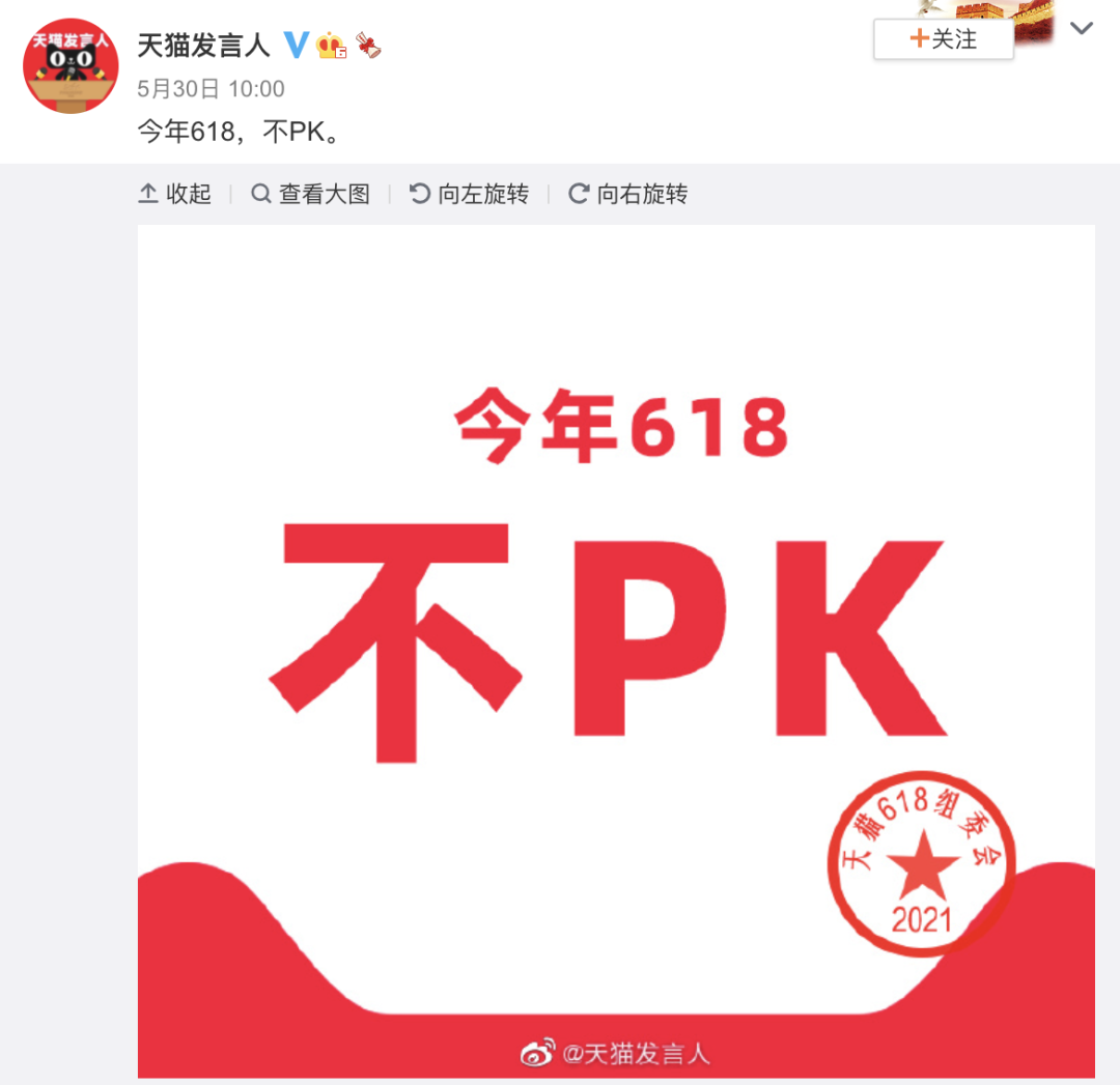 此前,天猫发言人在微博表示,今年618取消了游戏PK规则。