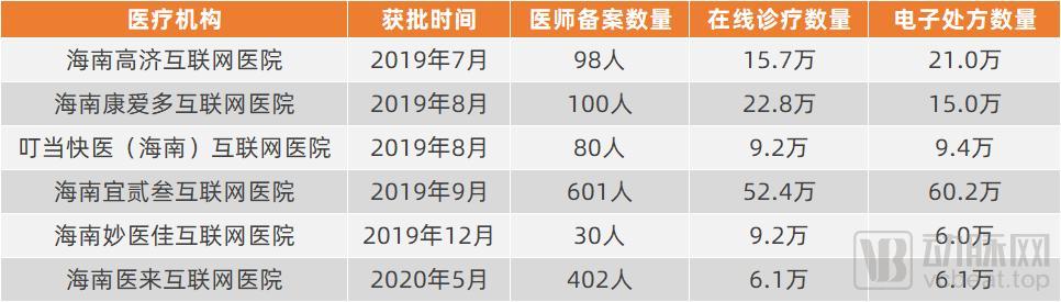 2月运营数据较高的互联网医院,来源:海南省卫健委官网