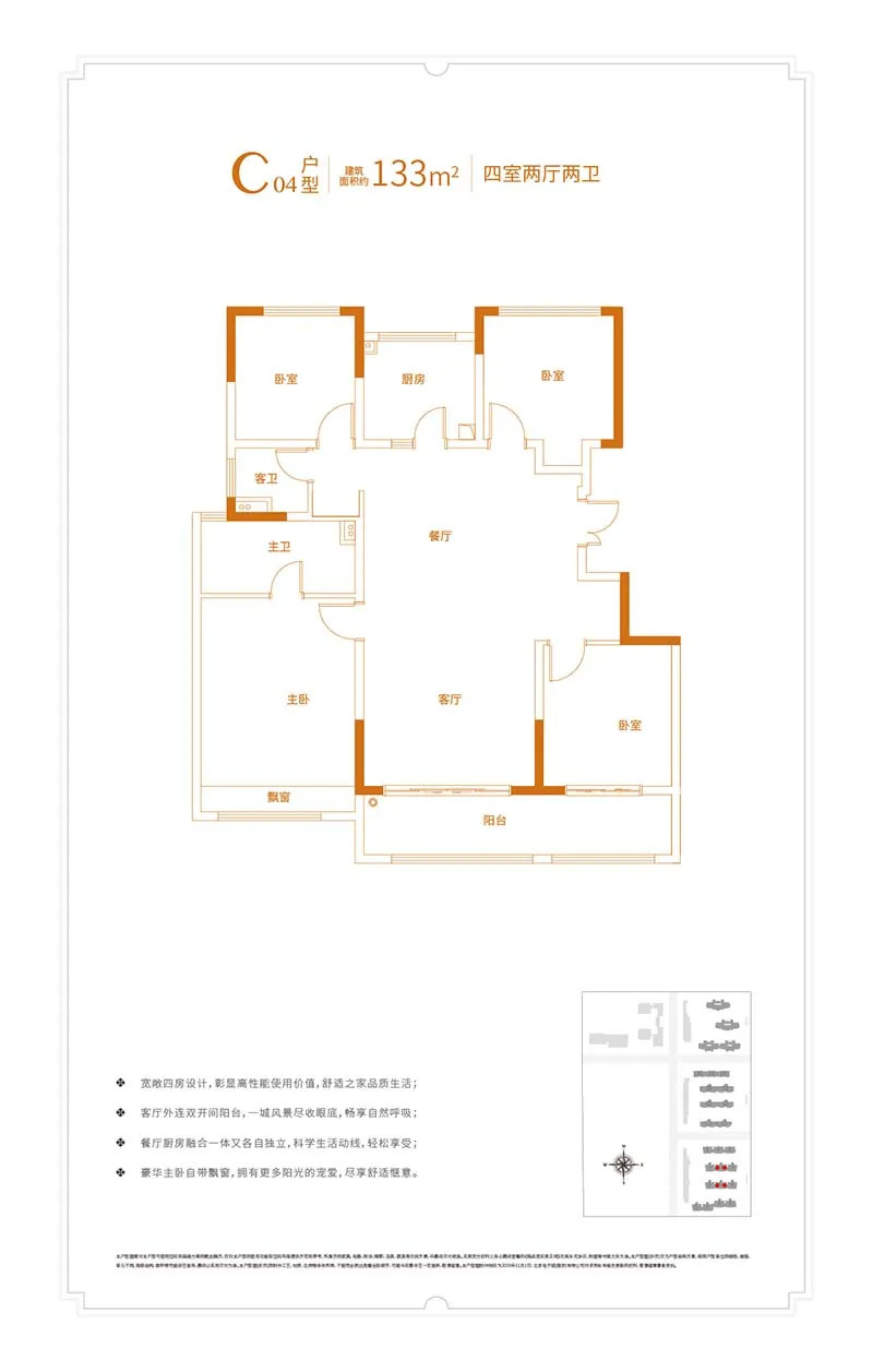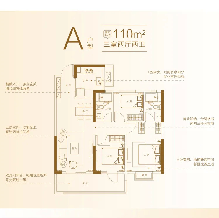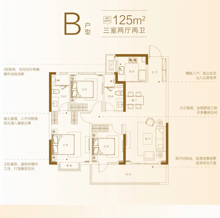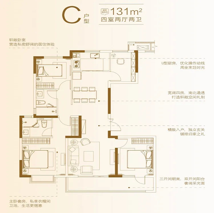 项目即将加推的四大王牌户型为例,建面约110-131㎡,标准大三房起步,均为大面宽、全两卫,空间感通透十足;在户型设计上,采用了市面上主流的三开间朝南的布局,户型设计均遵循方正实用的原则,南北通透;每户设计独立入户玄关、主卧套房设计,并且配备有双开间阳台,最大化地利用空间,满足买房人多重置业需求;另外,合理分配室内各个区域面积,提高业主居住舒适度。