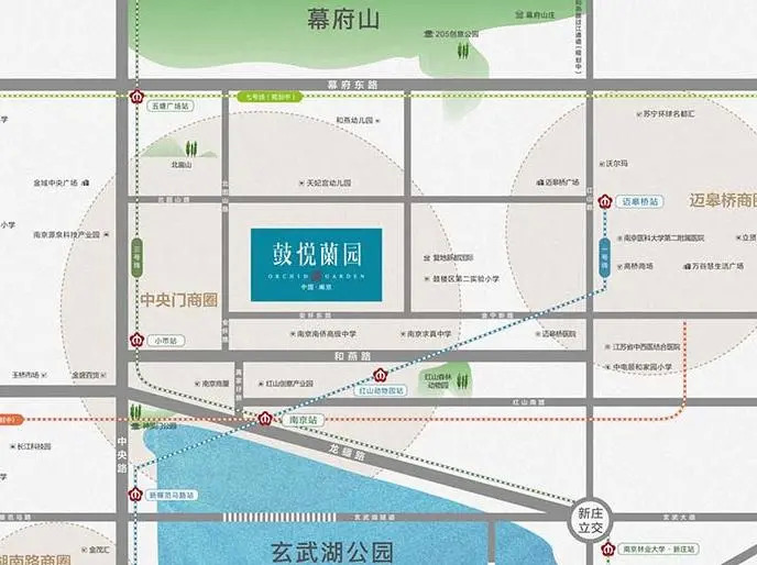 项目位于新鼓楼核心位置,周边三条地铁环绕(1号线,3号线,9号线(在建)),交通路网发达,紧靠中央门、湖南路、新街口三大商圈,同时一路之隔即为55万方葛洲坝国际广场,商业配套齐全;幕府山、狮子山、小红山、玄武湖等自然景观环绕项目;江苏省中西医结合医院、鼓楼医院、中大医院等三甲医院云集,医疗资源齐全。