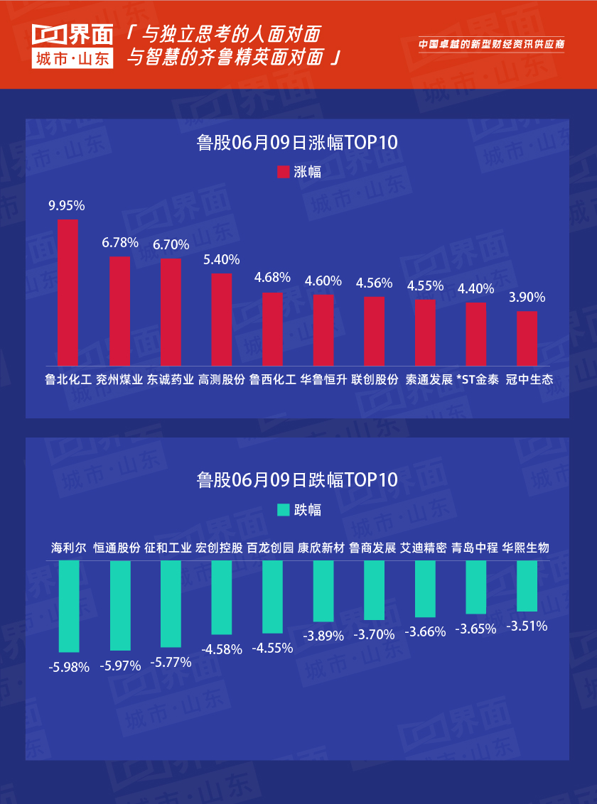 A股三大指数今日全天维持震荡整理态势,最终收盘涨跌不一。市场成交量略有萎缩,两市合计成交8810亿元,行业板块涨跌互现,煤炭板块大涨。北向资金今日净买入28.14亿元。受大盘影响,6月09日,山东123只股上涨,105只股下跌,9只股持平。