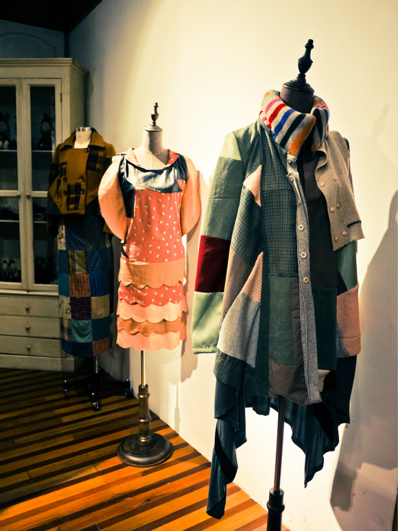 如今能从容运营FAKE NATOO的张娜将更多精力放到“再造衣银行”(Reclothing Bank)。以改造旧衣为宗旨的这一项目开始于2011年。她的北京好友祥子当时在五道营胡同开除了全国首家创意公益商店Brandu。喜爱收藏老物件的张娜和祥子一拍即合:她来挑选旧衣,再由祥子负责组织下岗女工进行旧衣清洗、消毒和分拆,最后运至上海,让张娜设计创作。“让带有时代烙印、人物情绪的衣服复活过来。”这是张娜改造旧衣的一大初衷。