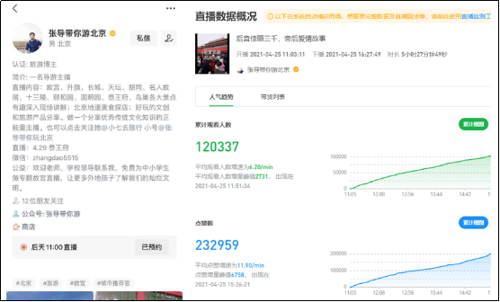 于个人类自媒体而言,阿星觉得,视频号本身着重打造个人品牌资产,既是在某一领域要具备强的知识高度,基于视频号私域流量起步逐步扩散公域流量的算法机制,只有真正切中目标群体的好内容才能真正获得不断扩大的关注,需要不断打磨内容及内容的表达方式、展现方式,找到最适合的一种。比如《私域流量池》作者刘翌老师发起了百日依靠视频号直播变现百万的活动,而在进行第22天之后累计变现达到115597元。再比如视频号“张导带你游北京”的一场讲解故宫文化的直播,累计开播5小时27分,共有12万人次涌进他的直播,点了近23.3万次赞。而张导作为一名资深导游,深谙北京的历史人文;其直播的爆发不是偶然,一是提前在3月31日到4月25日,进行了不少于12场带预告的直播,二是借助北京名胜古迹的大IP,三是在直播中认真做好内容。