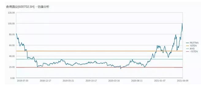 根据Wind数据,6月9日盘后,中证白酒指数滚动市盈率57.87倍,百分位处于98.05%的绝对高位。舍得酒业的滚动市盈率位85倍,已创下3年新高。