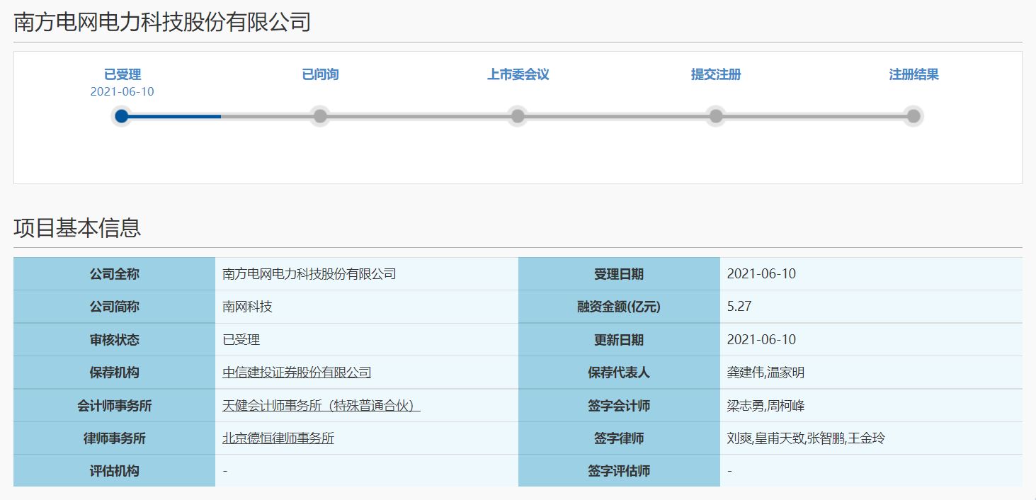 据上交所官网6月10日消息,南方电网电力科技股份有限公司科创板IPO申请已获受理。