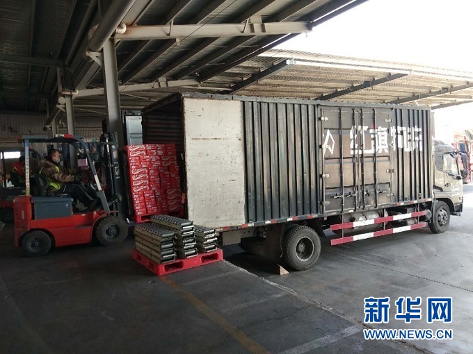 在兰州红旗物流有限公司仓储基地,车辆正在装运货物。(受访者供图)