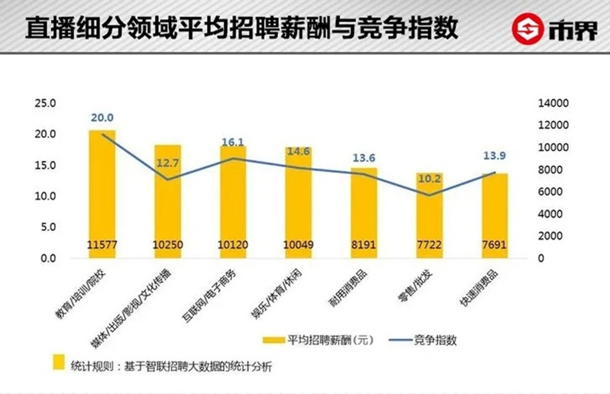 2021年,网易有道精品课最新发布的校招职位显示:中大班课主讲老师年薪50万元起,优秀者年薪可超100万;无独有偶,字节跳动旗下清北网校,给教师开出200万的年薪;智联招聘在此前的春季直播产业人才报告中提到,教育培训领域直播岗位竞争热度最高,平均招聘薪酬高达11577元/月。