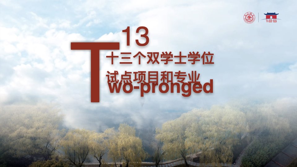 第三个子母T,T意为:Two-pronged,代表着双管齐下的13个双学士学位项目和专业。