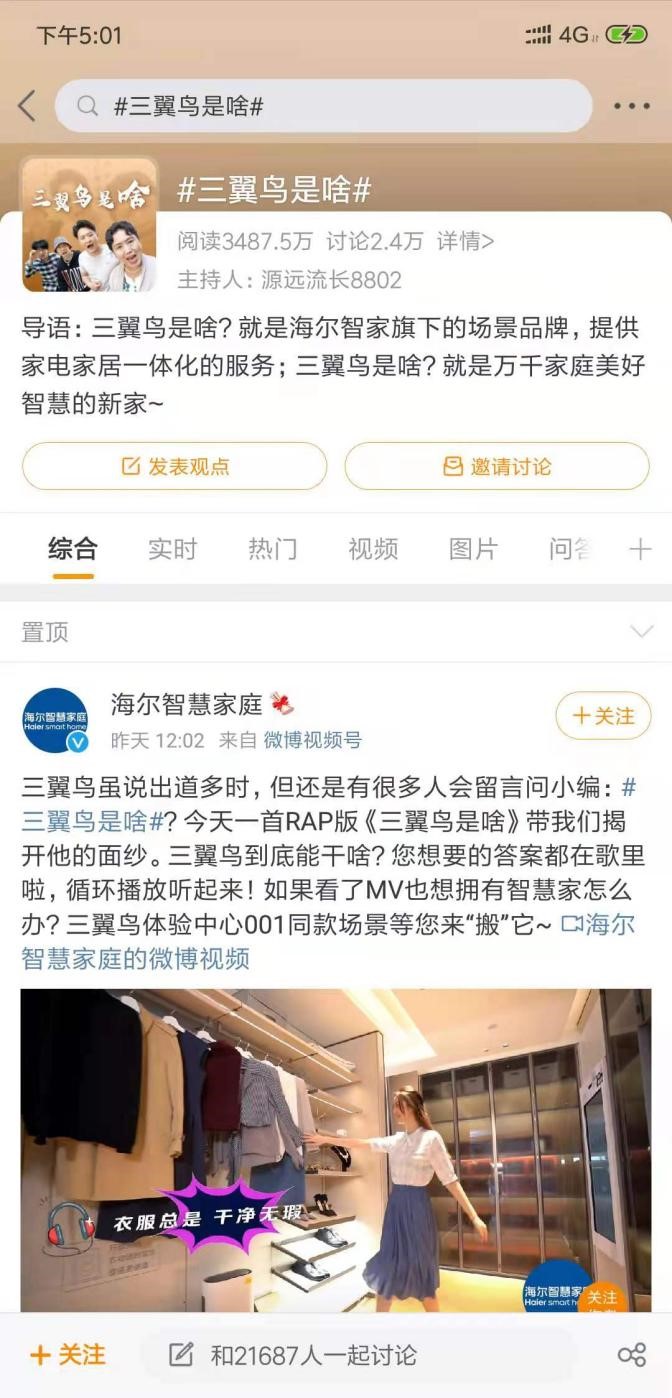 三翼鸟,是啥?当越来越多的人开始注意到三翼鸟,大家也开始想要了解这个新生品牌的独特之处。为了揭开三翼鸟的神秘面纱,6月10日,海尔智家推出新歌《三翼鸟是啥》,用RAP的形式解读三翼鸟。截至6月11日16点,#三翼鸟是啥#微博话题量3487.5万、讨论量2.4万。《三翼鸟是啥》在腾讯、爱奇艺等主流视频平台总播放量超过60万。