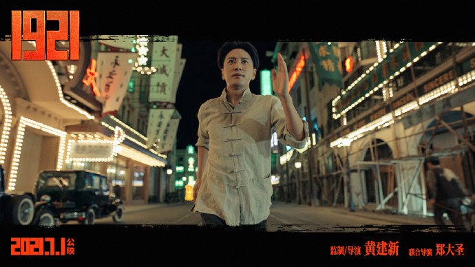 《1921》由中共上海市委宣传部指导拍摄,黄建新、郑大圣执导。电影联合导演郑大圣表示,影片运用现实主义创作手法,物理复现了100年前活生生的生活、人物,同时运用了艺术电影的写意手法,展现了一代年轻人的内心世界。