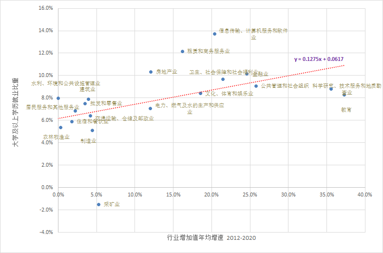 从图3可以清楚地看出,过去几年行业的人力资本密集度越高,行业增长越快。