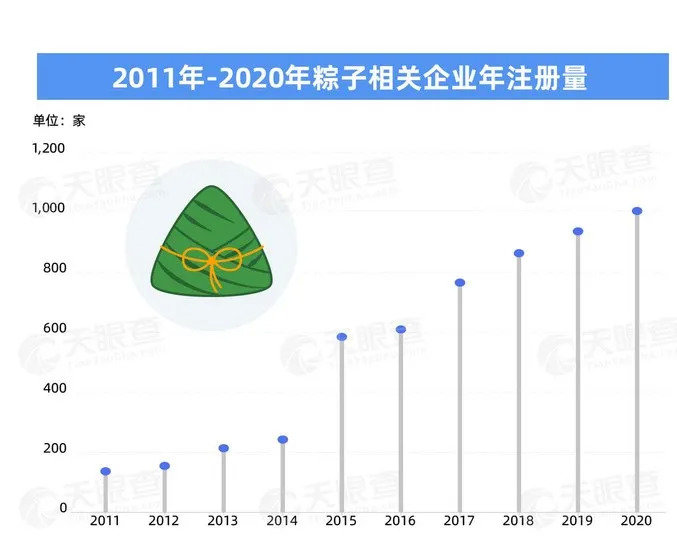 粽子以端午节的食品出现,经历了原材料筛选、加工、制作,到分发销售,最后抵达消费者,粽子相关的公司在逐渐增加,产业也在不断的升级。尽管南北方粽子的差异一直存在,但并不能影响其朝着“国潮食品”迈进。