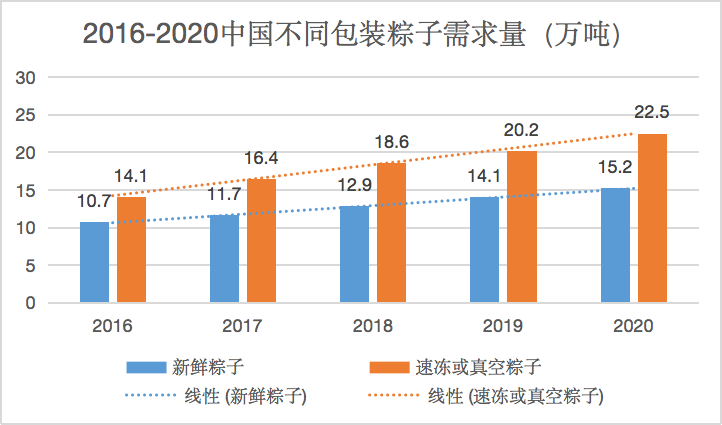 数据显示,2016-2020年我国粽子需求量持续上升,由2016年24.7万吨增至2020年37.7万吨。