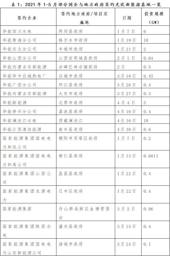 在“双碳”目标刺激下,各中央能源企业、地方能源国企以及地方政府对新能源发展处于持续亢奋中。几乎每天都会见到能源国企与地方政府签约的盛大场面和相关新闻,签约内容主要集中在“新能源基地”建设和新能源项目的投资,基地建设越大越震撼,其中光伏绝对是主角,小于1 GW的基地都不好意思公布出来。