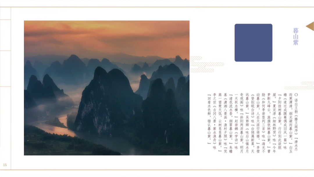同样的还有“暮山紫”,也是诗人的颜色,有上百首古诗写到过“暮山紫”。