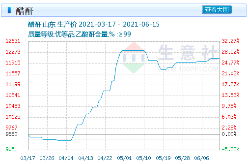 据生意社消息,6月15日,国内醋酐出厂报价上涨。国内醋酐企业周边报价上涨,市场成交价上涨。国内醋酐出厂报价12100-12600元/吨左右,实际成交价详谈。