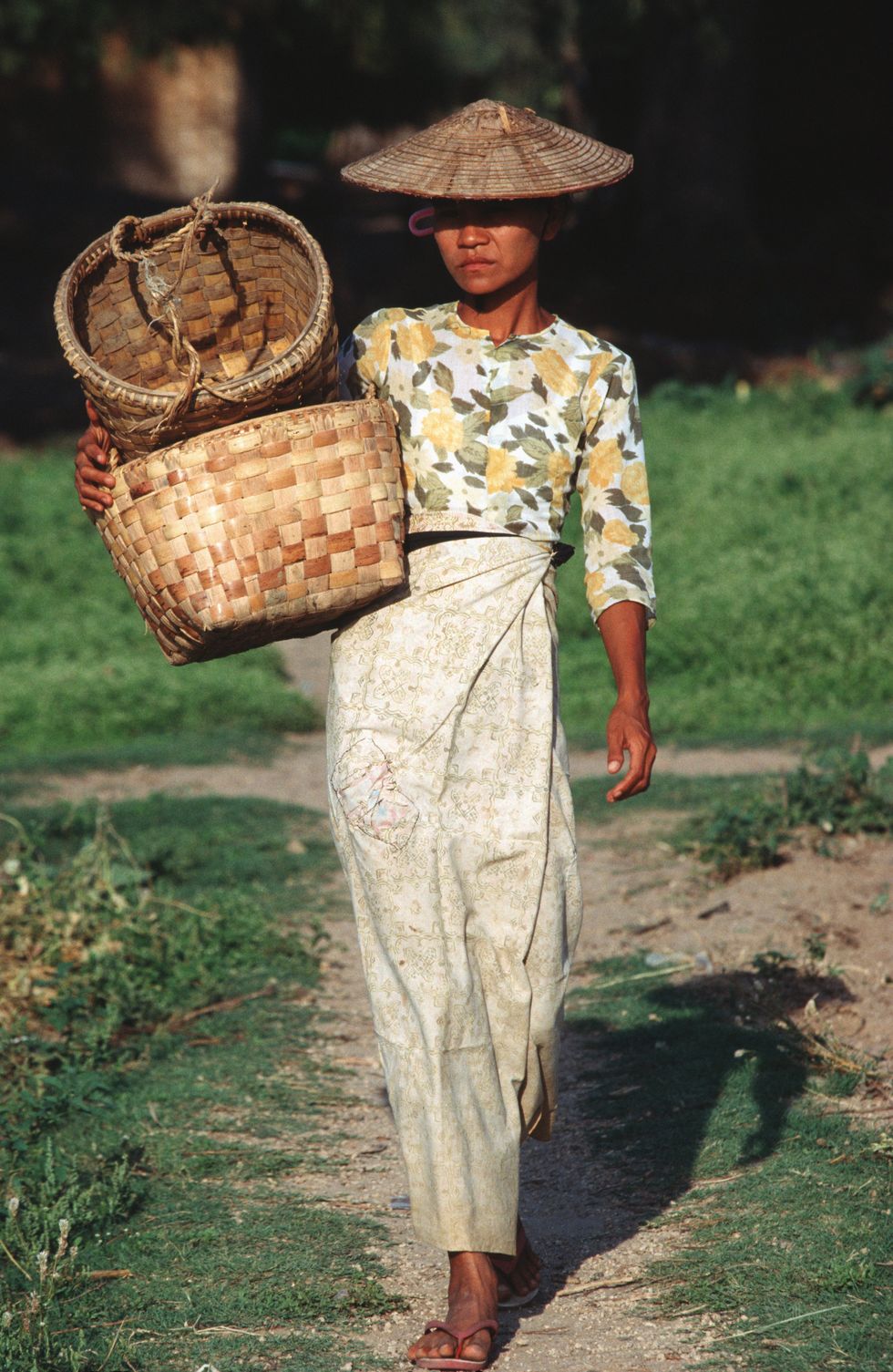 在东南亚,人们常以蜡染技术为纱笼赋予独特的色彩和图案,花卉图案也常见于纱笼。如今,时装秀上出现的纱笼也总是富有各种色彩。