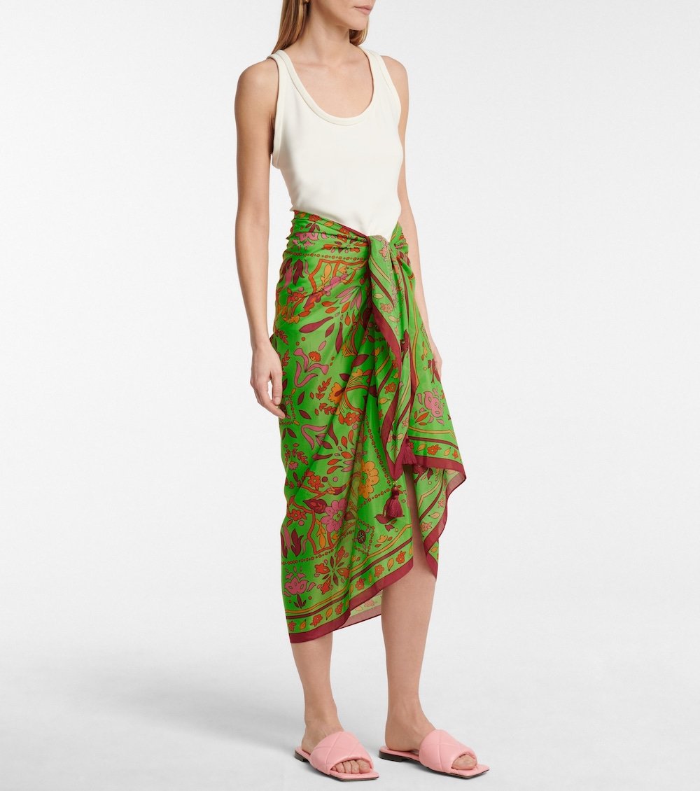 纱笼起源于东南亚,已经有一千多年的历史。这是一种由长方形织物系于腰间的的传统服饰。纱笼穿着舒适,在马来西亚,许多女性每天都穿着纱笼来处理日常家务。而当纱笼被吸纳进时装,它成为一种常见于海滩等度假场景的裹身裙,总是能打造舒适休闲的风格。