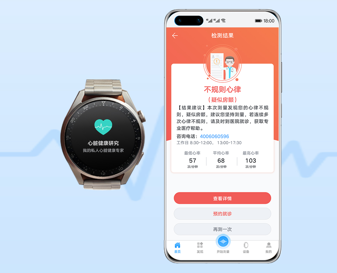 专业健康机构方面,301医院的合作就是其中一项尝试。基于设备自有的光电容积脉搏波技术(PPG),当301医院的心脏健康研究APP筛查出用户心脏健康有房颤风险时,会给予用户就医建议,提供专业指导以及预约就诊服务。