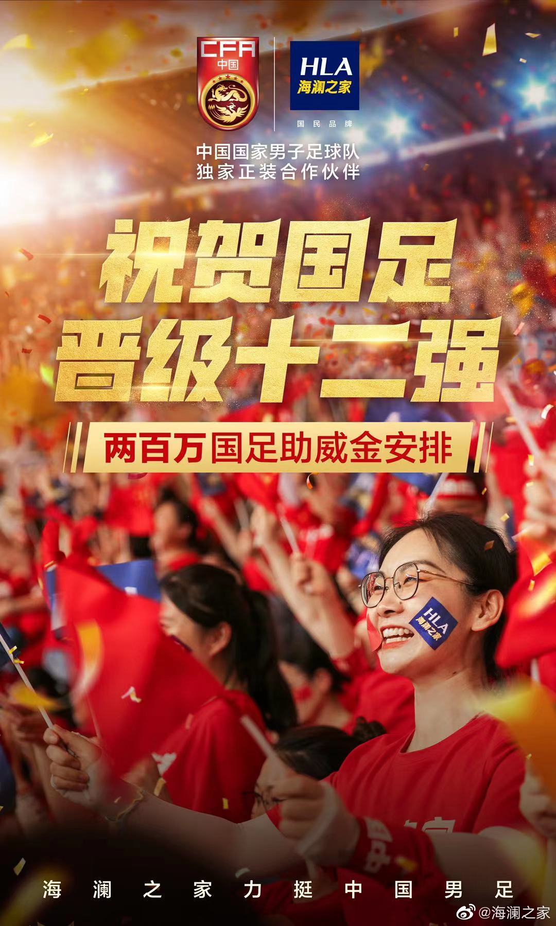 而在国足顺利挺进12强赛后,海澜之家更是追加200万元奖金赠予中国足球队,预祝国足12强赛胜利突围。