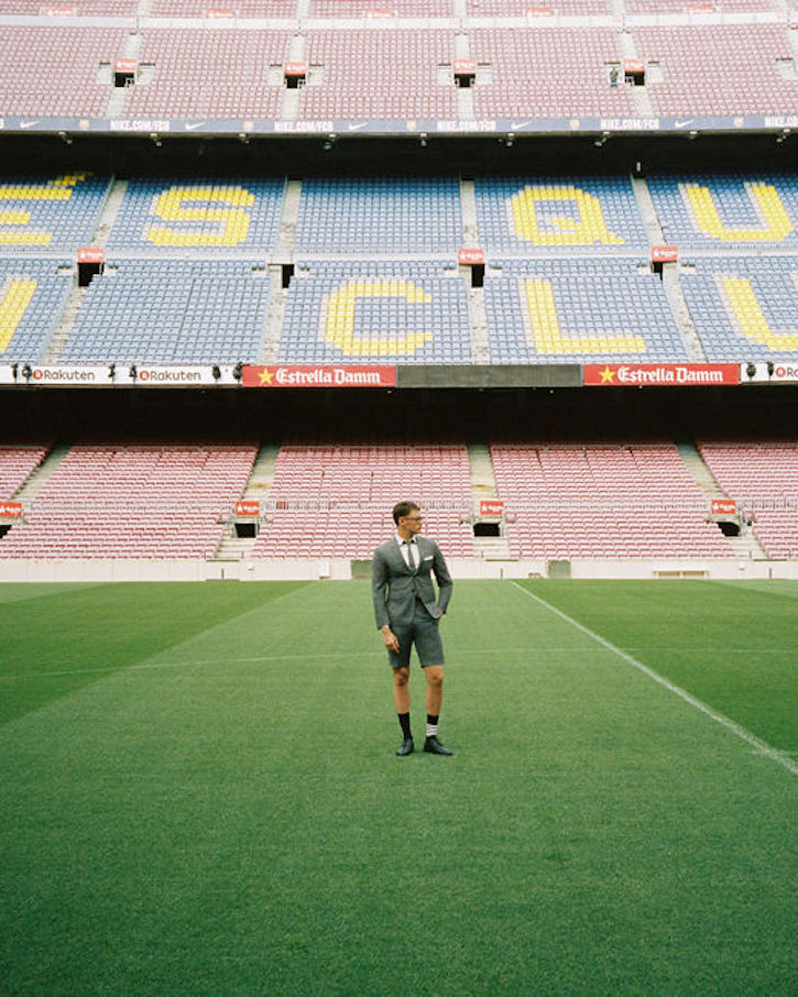 而以复刻传统美式常春藤风格并对其进行现代化创新闻名的美国奢侈男装品牌Thom Browne,在2018至2019季度“跨越”大西洋为巴塞罗那足球俱乐部(FC Barcelona)的球员提供正装。两粒式纽扣西装搭配浅灰色短裤,仿佛回到六、七十年代美国东岸的校园。