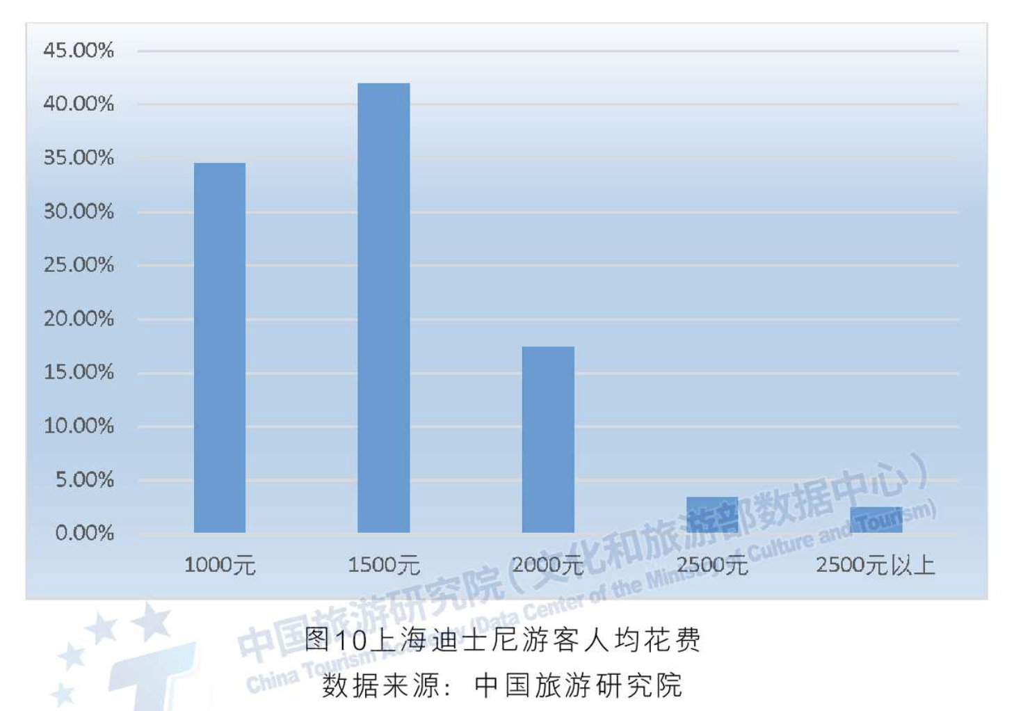 而上海迪士尼乐园的游客平均花费、及其对上海本地的旅游带动效应也相当可观。中国旅游研究院数据显示,上海迪士尼乐园游客的平均花费集中在1000元至2000元之间,在迪士尼游玩的游客平均在上海停留的时间集中在2至3天为主,其次是3-5天。