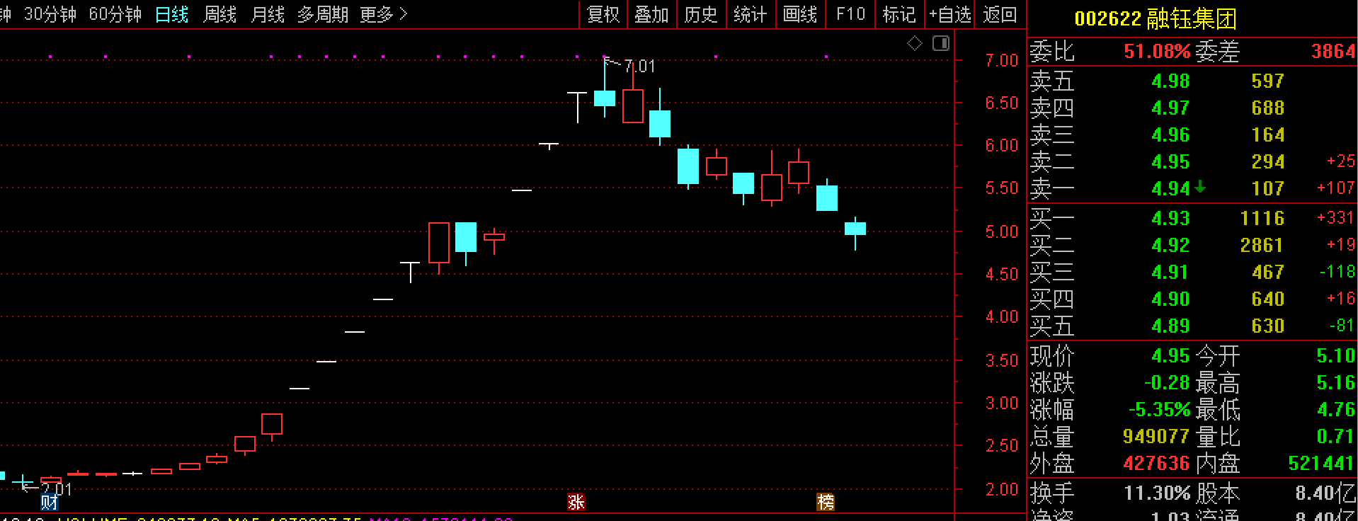 一度成为1元股的融钰集团(002622.SZ)最近一个多月异军突起,股价从4月30日至6月3日区间大涨超过220%,成为该时间段A股中的“王者”,累计涨幅仅次于当时刚刚登陆A股的新股财达证券(600906.SH)。
